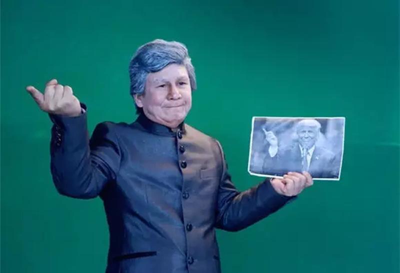 Another impersonator, Li Liangwei, represents an earlier, more commercialized path of imitation. This retired magazine editor-in-chief from Yueyang, Hunan, impersonated Trump through brokerage packaging, wearing blue contact lenses and a wig.