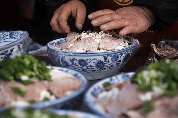 - Pita Bread Soaked in Lamb Soup (羊肉泡馍): A famous Xi’an specialty where diners break a firm, unleavened flatbread into a bowl, which is then filled with a fragrant lamb soup and tender meat.